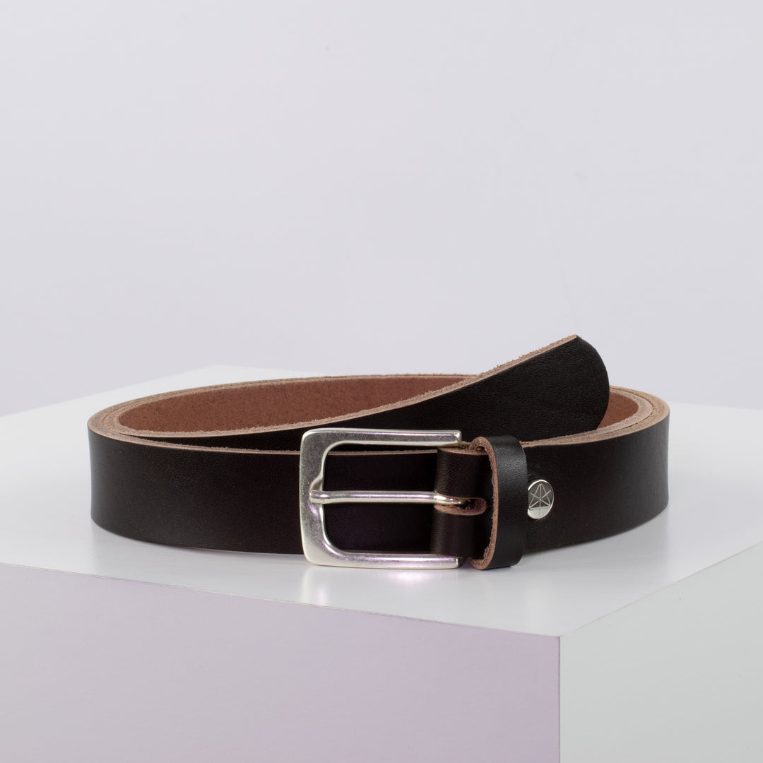 Ledergürtel 3cm mit Schnalle Caracas silber dunkelbraun ohne Muster