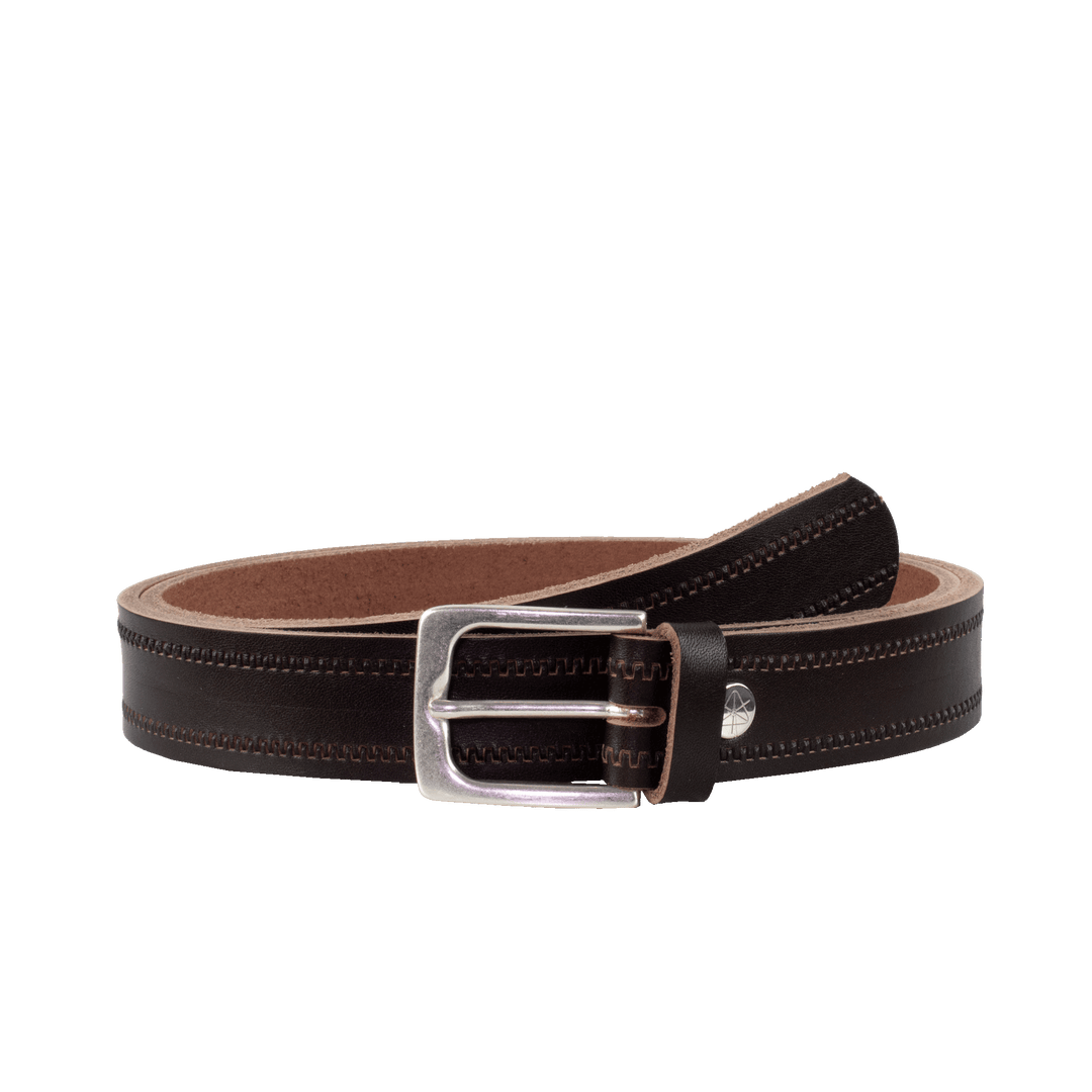 Ledergürtel 3cm mit Schnalle Caracas silber dunkelbraun kleine Welle